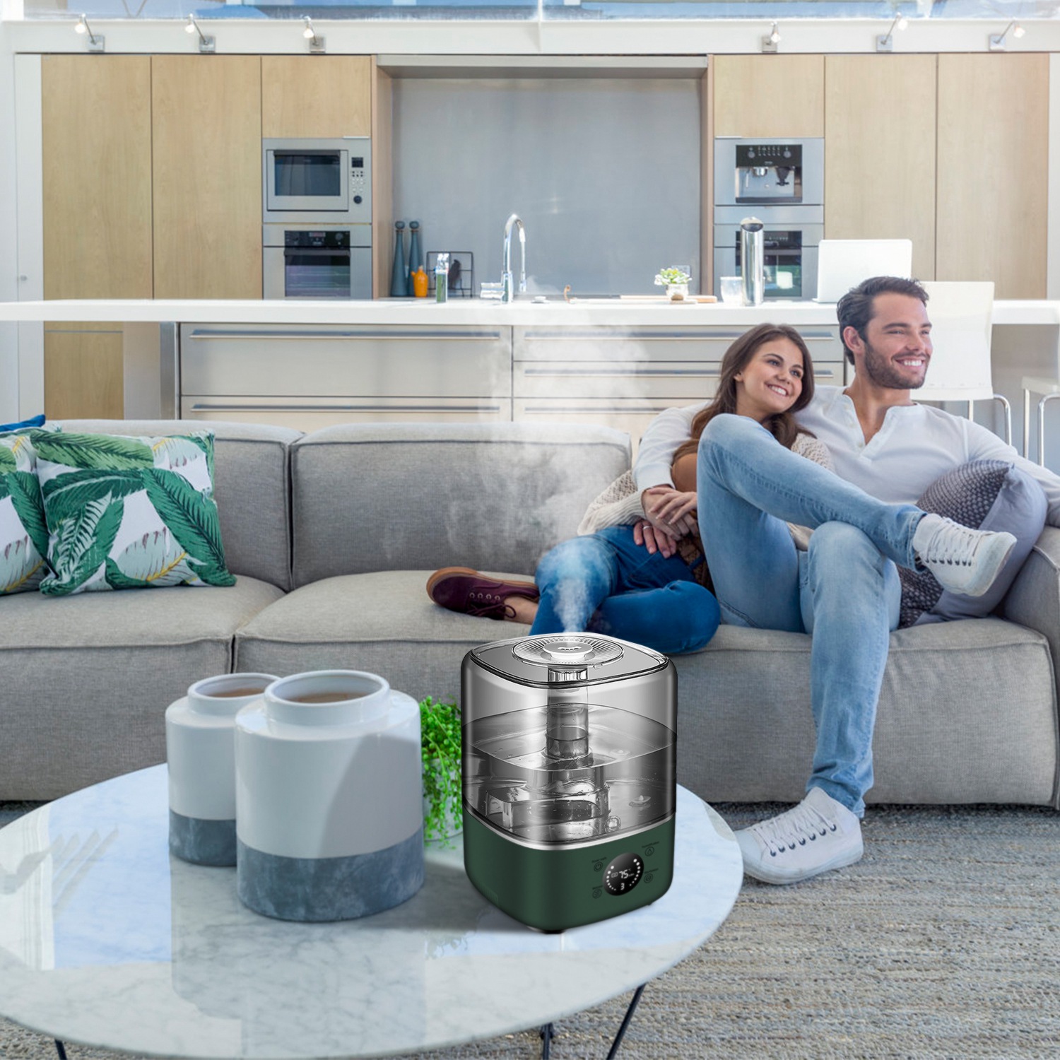 Home > 5L/1.32Gal Ultrasonic Air Humidifier Electric Mist Humidifier with Temperature Humidity Sensor Timer Setting UV Light Adjustable Mist Level Quiet Esse