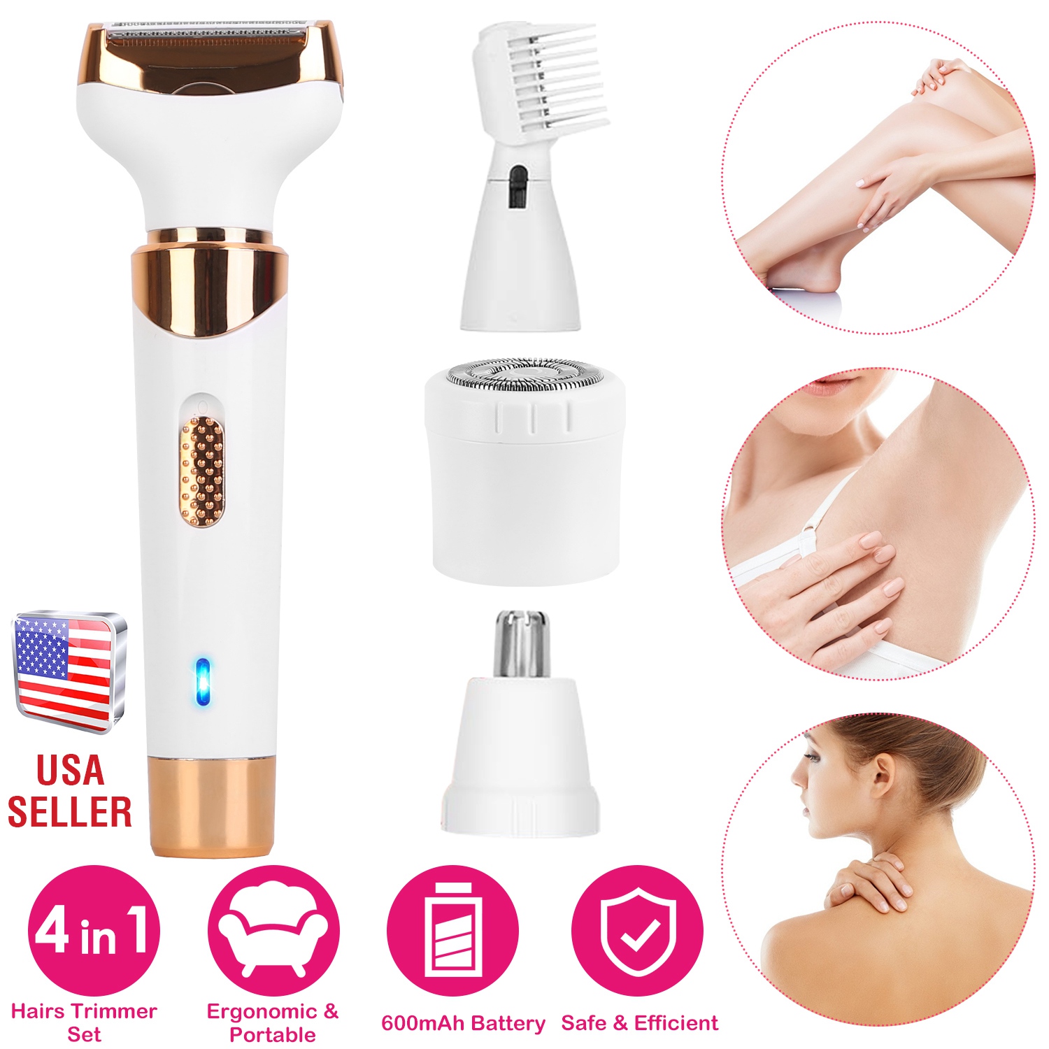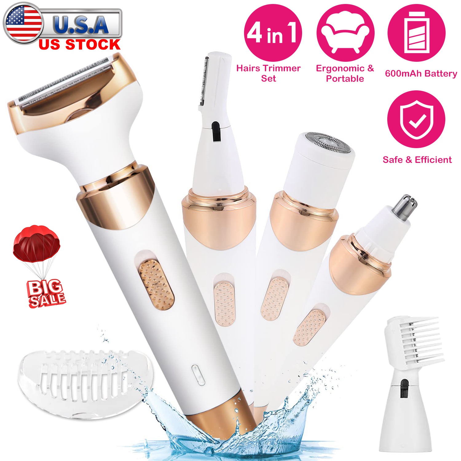 Home > 4 In 1 Women Electric Hair Shaver USB Rechargeable Hair Remover Cordless Eyebrow Nose Hair Trimmer Painless Hair Clipper Set for Bikini Leg Wet Dry Us